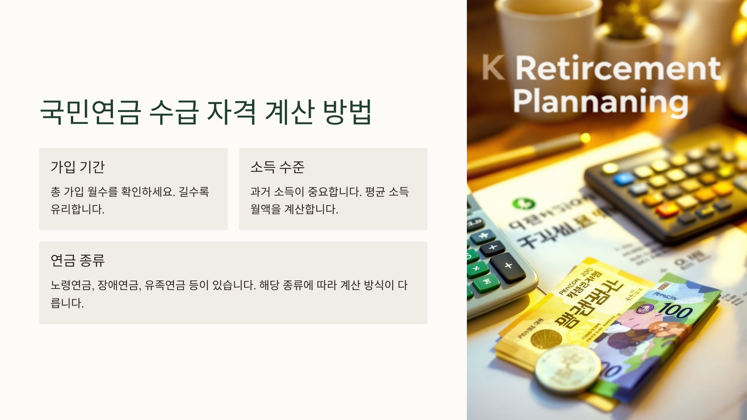 하지만 연금을 받으려면 일정 조건을 충족해야 해요. 가입 기간, 연령, 납부 금액 등에 따라 수령액이 달라질 수 있죠. 국민연금 수급자격과 예상 연금액 계산방법을 쉽게 설명해 볼게요!