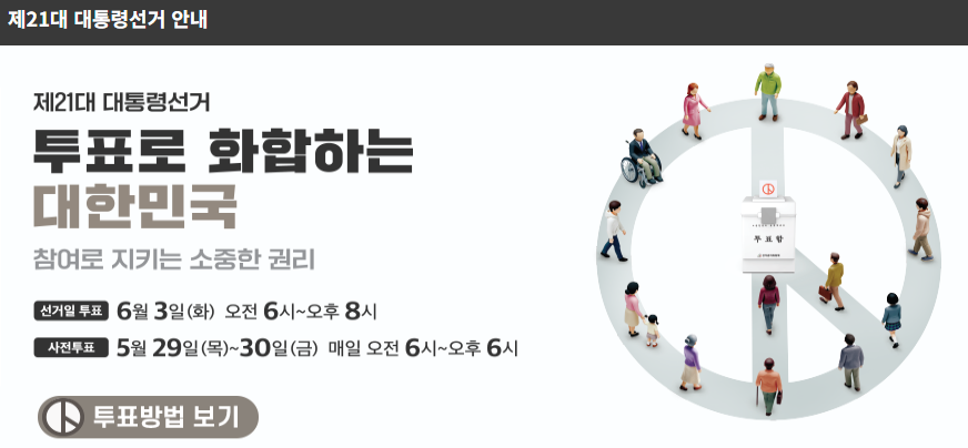 • 👉 사전투표: 5/29(목)~5/30(금), 오전 6시~오후 6시 (전국 사전투표소)