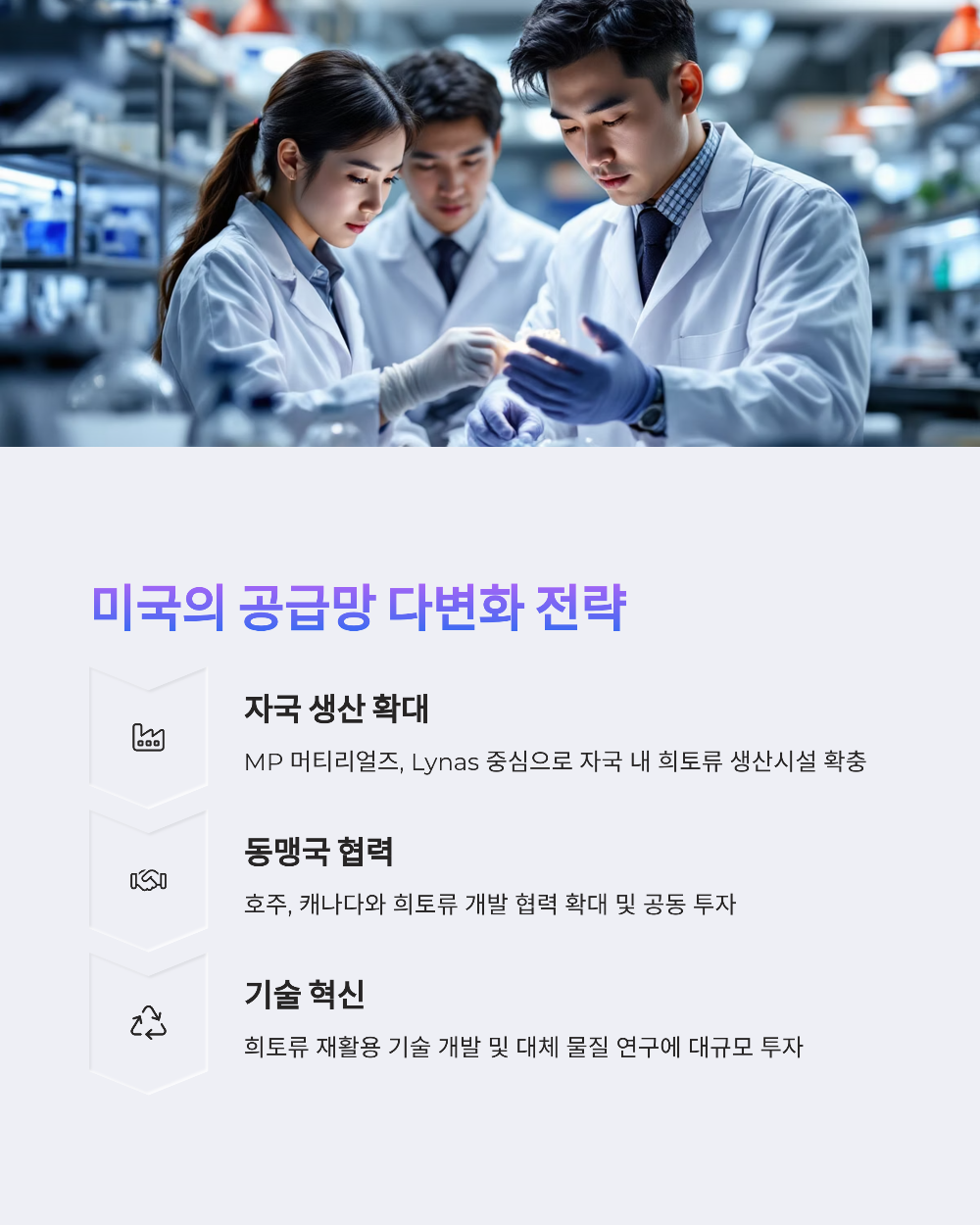 또한, 미국과 유럽연합은 ‘탈 중국 전략’을 본격적으로 추진 중이에요. 미국은 국방 안보 차원에서 희토류 자립을 강조하고 있고, 유럽도 자국 내 공급망 확보를 위해 다양한 투자와 정책을 펼치고 있답니다.