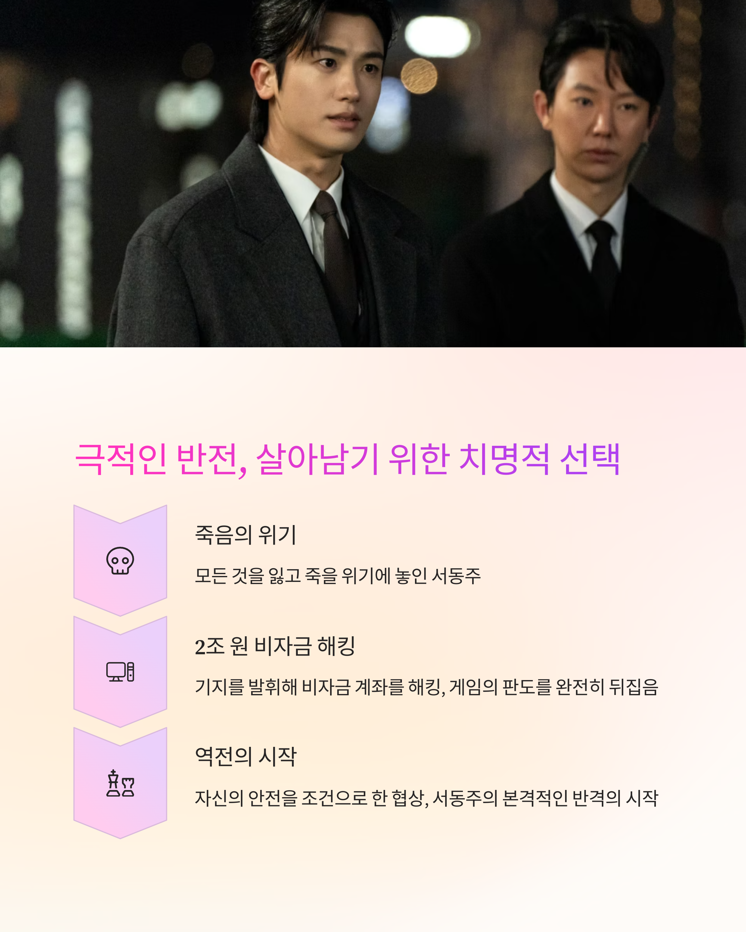 특히 기억을 잃은 상태에서도 드러나는 서동주의 천재적인 해킹 실력과 위기 대처 능력은 긴장감을 끌어올려요. 한 회가 끝날 때마다 다음 회를 보지 않고는 못 배기게 만드는 흡입력이 있어요.