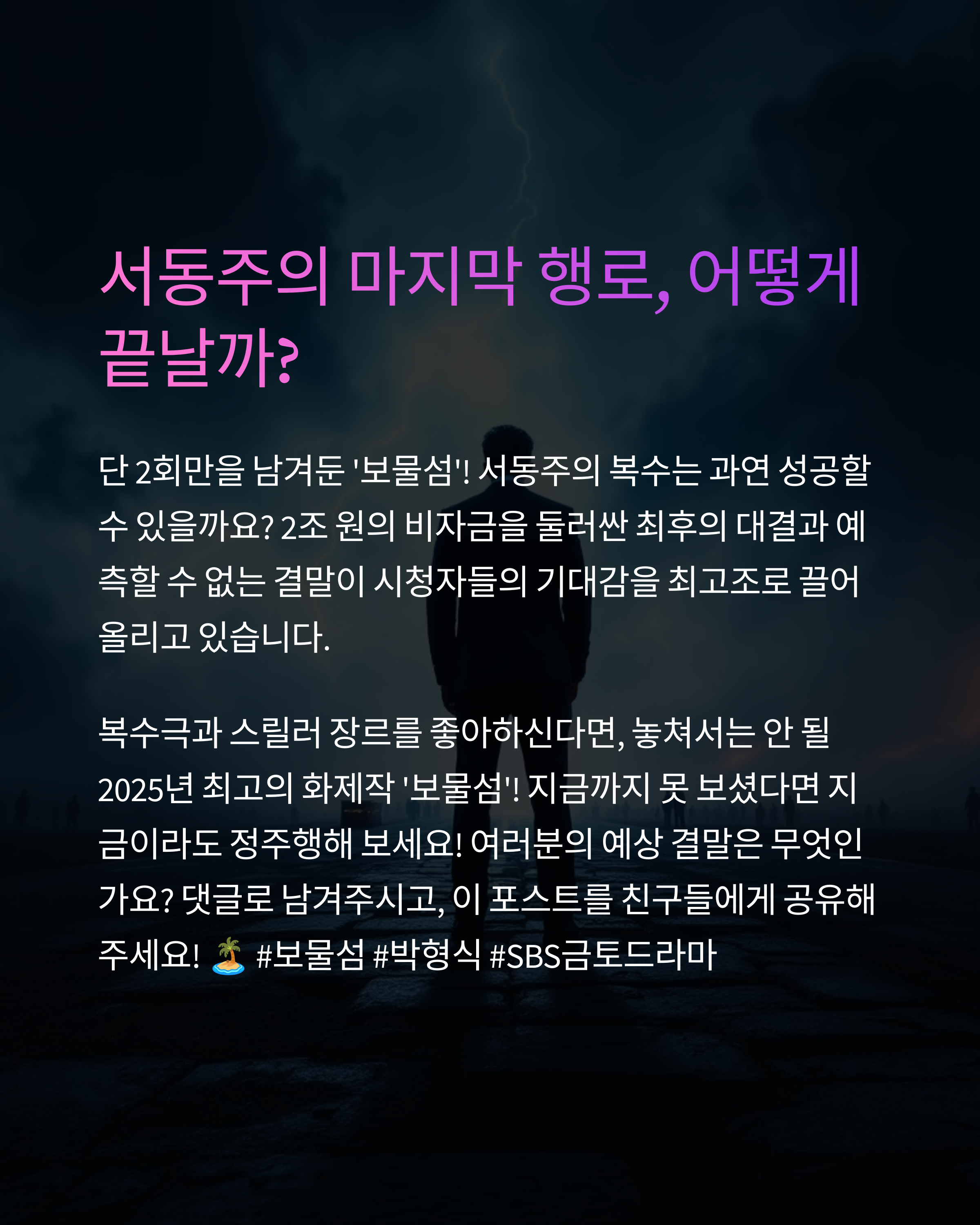 스페셜 방송도 예정되어 있다는 점에서, 종영 이후에도 '보물섬' 열풍은 계속될 것 같아요. 제작진 역시 시즌2나 스핀오프에 대한 여지를 남겼다는 점에서 후속작에 대한 기대감도 형성되고 있어요.