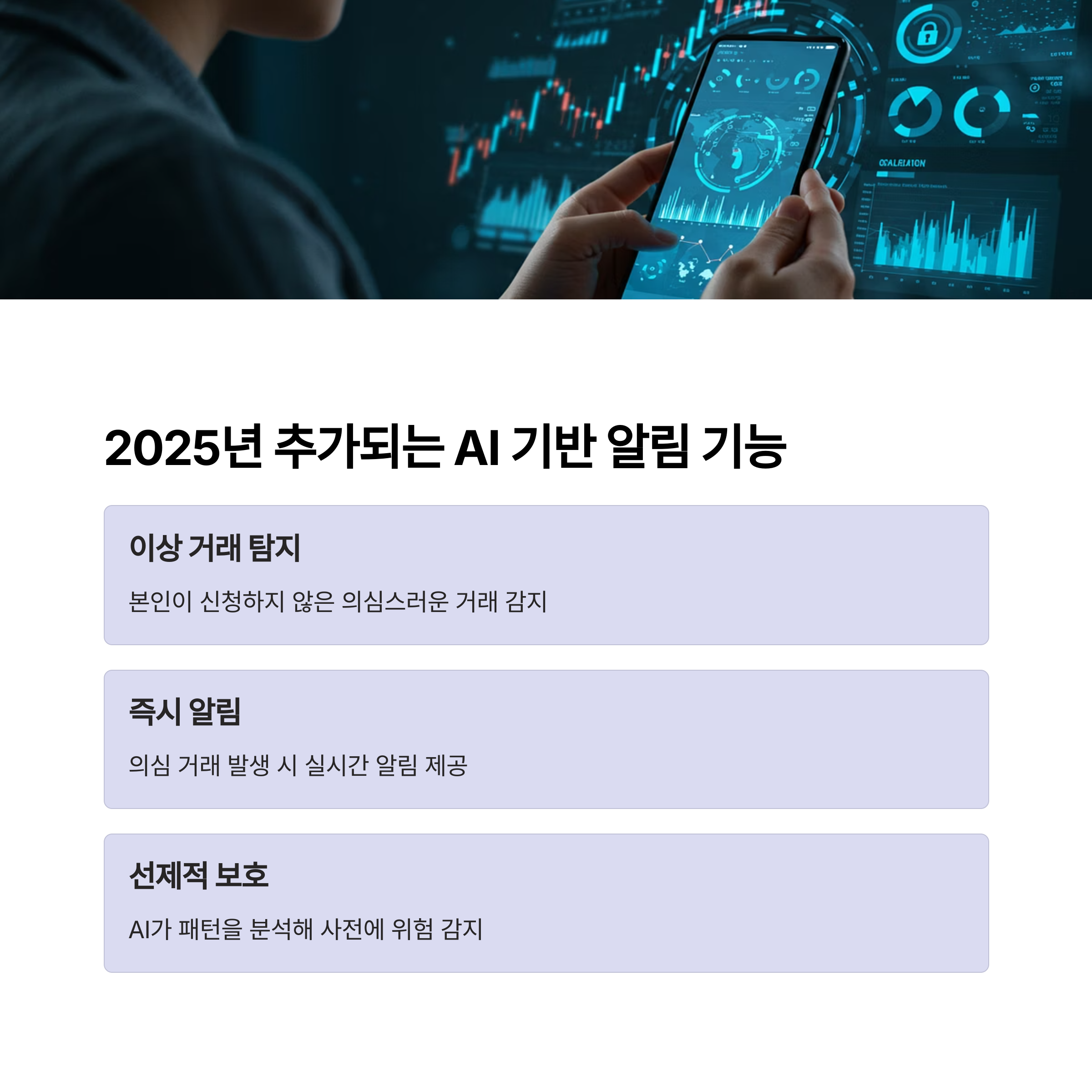 2025년부터 여신거래 안심차단 서비스에 AI 기술이 본격적으로 도입됐어요! 이제는 본인이 신청하지 않았더라도, 의심스러운 거래가 감지되면 즉시 알림을 받을 수 있는 기능이 생겼답니다. 🤖