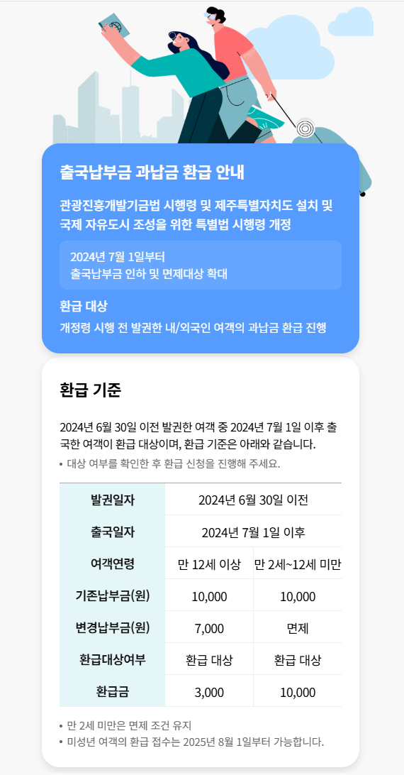 만 2세 미만의 영유아는 기존에도 출국납부금이 면제되었기 때문에 환급 대상에서 제외돼요. 이는 합리적인 조치인데, 애초에 납부하지 않은 금액을 환급할 이유가 없기 때문이죠. 하지만 가족 여행 시 영유아를 동반한 경우에도 다른 가족 구성원들은 각각의 연령대에 따라 환급받을 수 있어요.