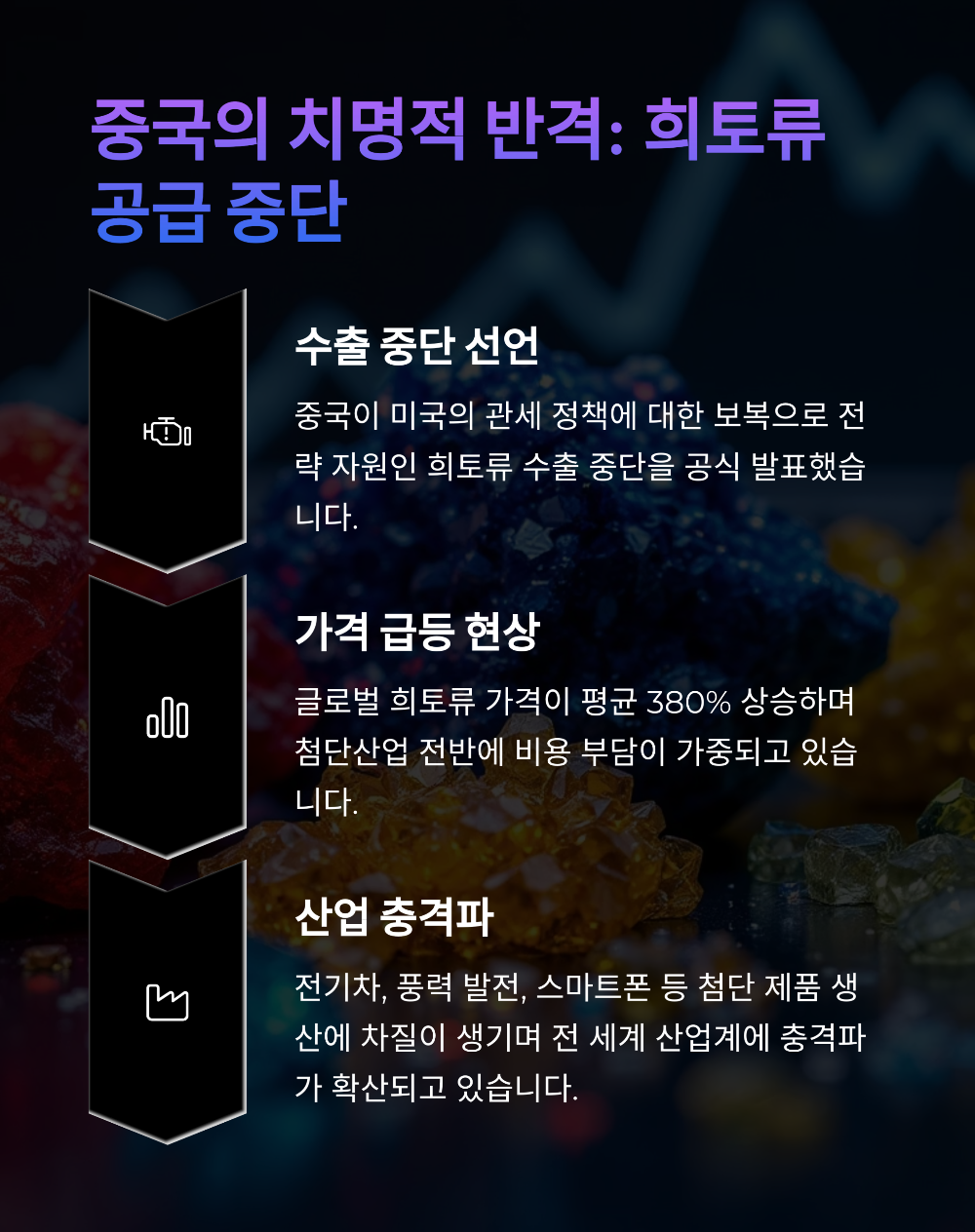 | 2025.04.04 | 중국, 중희토류 및 자석 수출 전면 중단 | 첨단산업 충격 |
