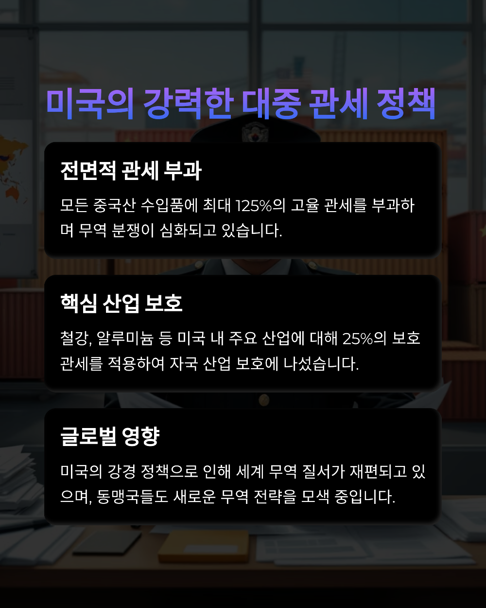 | 2025.04.02 | 미국, 중국산 제품 최대 145% 관세 발표 | 무역갈등 격화 |