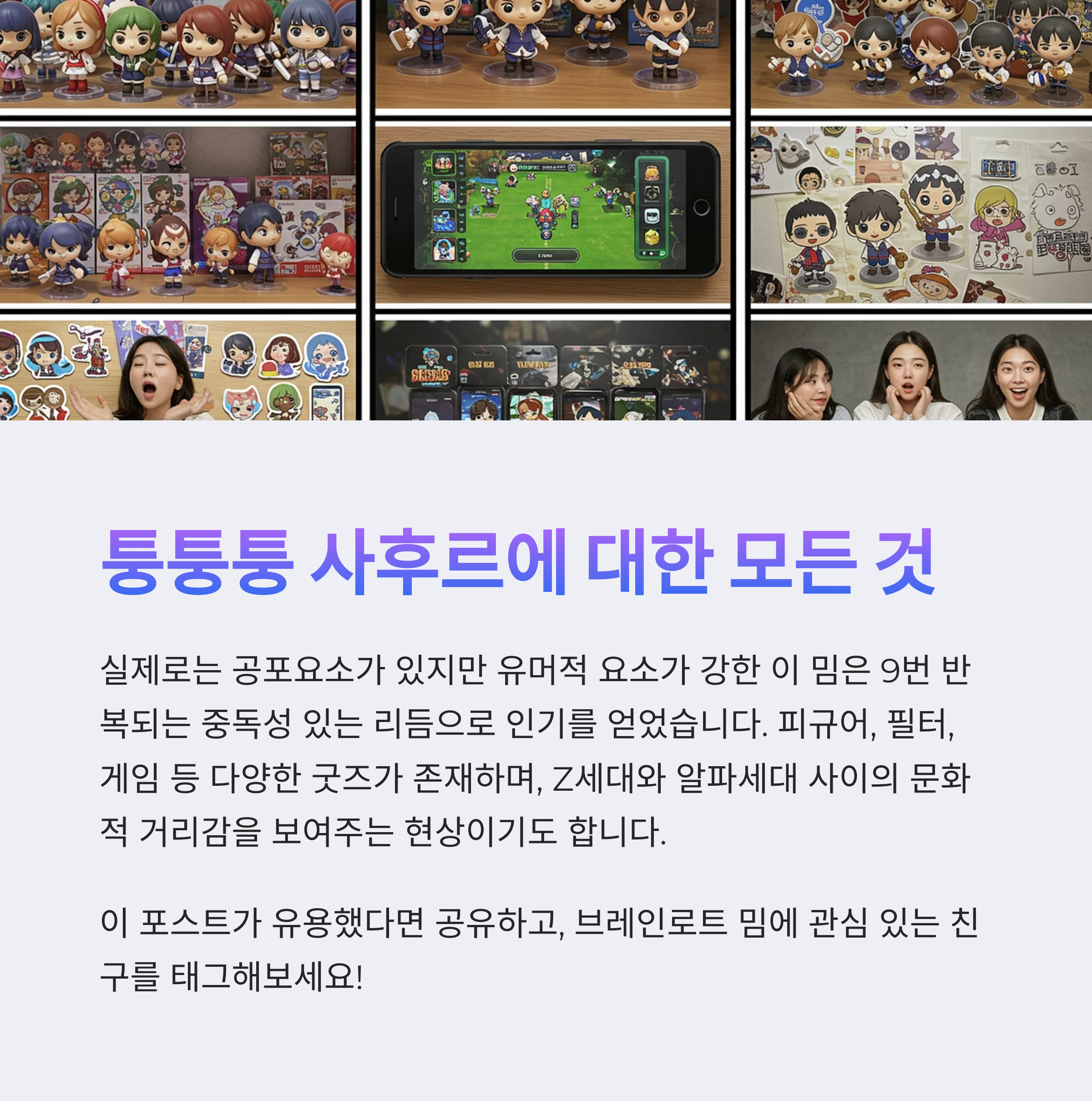 이제 밈은 단순한 웃음 코드가 아니라, 기술과 문화, 사회를 연결하는 ‘하이브리드 콘텐츠’로 진화하고 있어요. AI와 숏폼 시대의 결합, 그 대표주자가 바로 이 퉁퉁퉁 사후르랍니다.