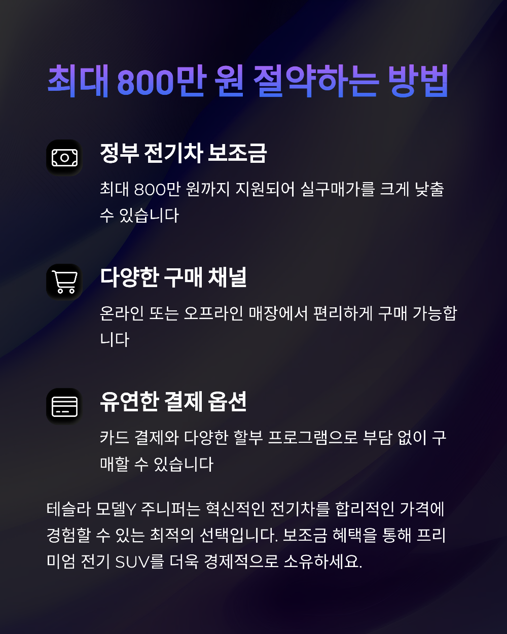 특히 2025년형 모델 Y는 디자인과 성능에 있어 큰 변화가 있었고, 그럼에도 불구하고 가격을 유지했어요. 소비자들에게는 더 많은 혜택을 제공하는 셈이죠. 그럼 이제, 테슬라 모델 Y 주니퍼의 보조금 받는 방법을 알아볼게요!